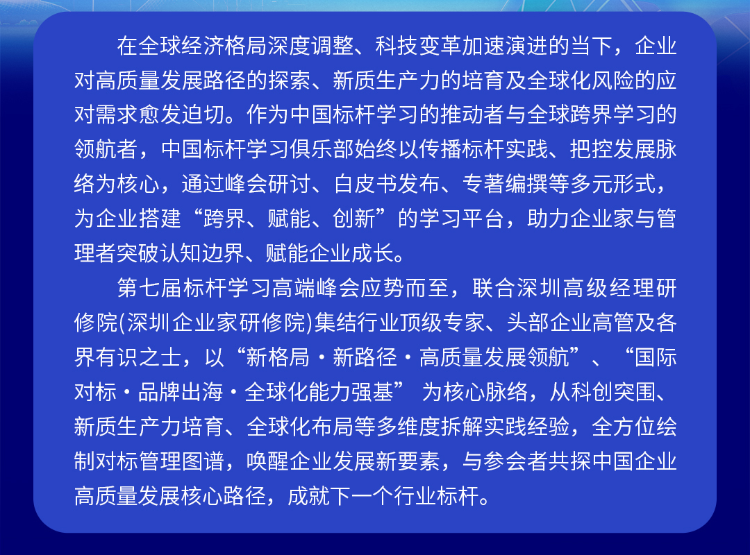 参加深圳2025标杆学习峰会,详情请咨询万斌老师 13661395399